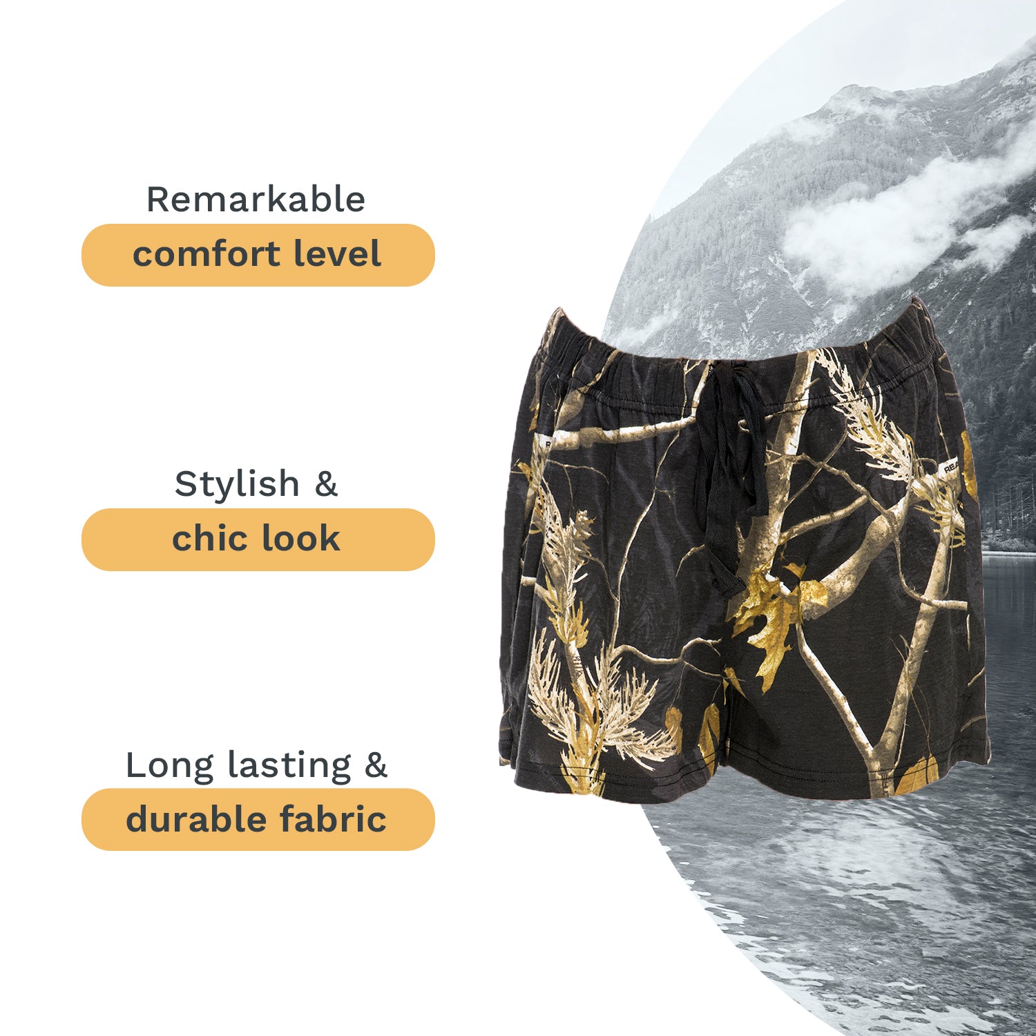 Mooselander - Wide Leg Ladies' Sleep Shorts, Comfy Shorts for Women with Realtree Camo Print, Breathable, Elastic Waistband Camouflage Shorts
