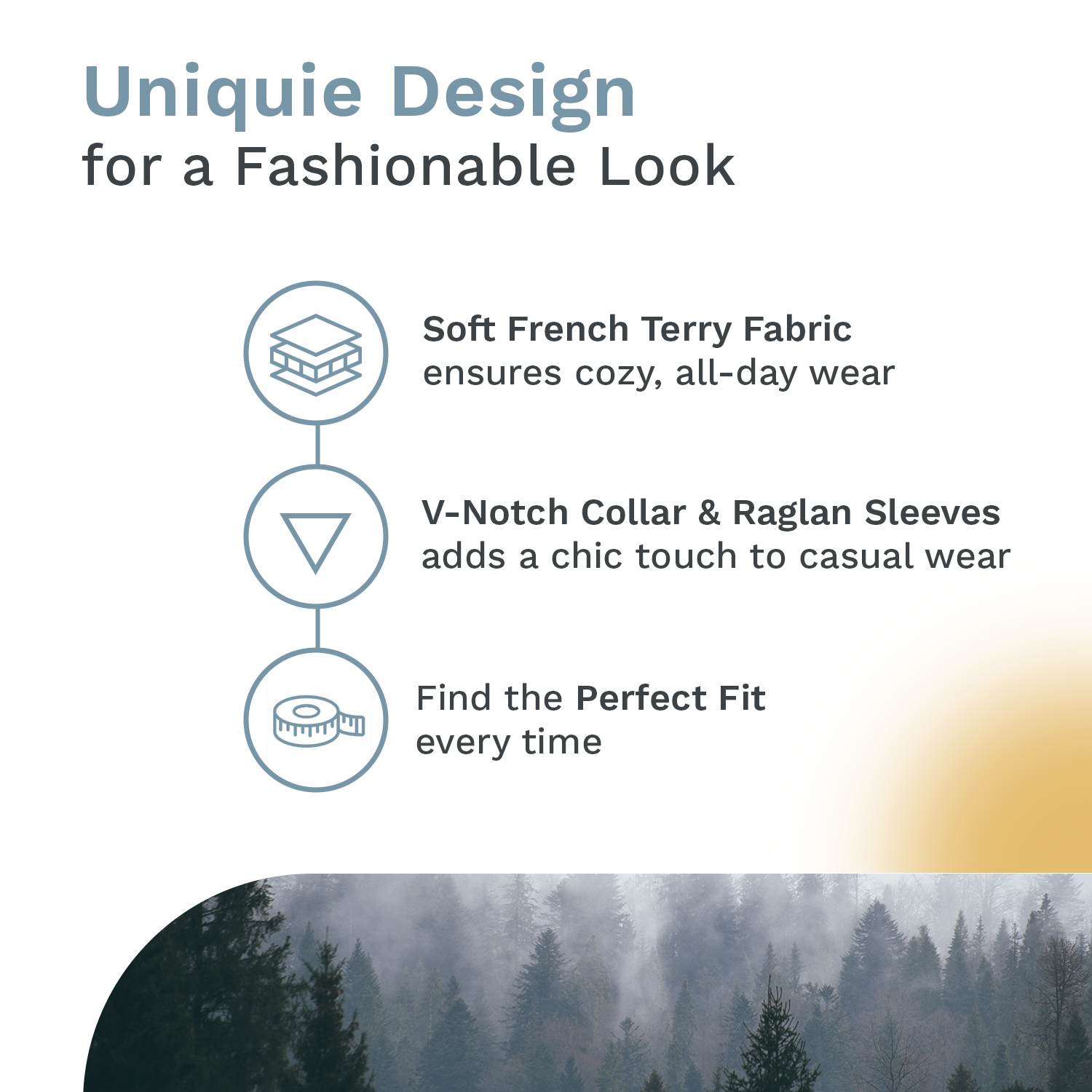 These sweatshirts are a must have in your wardrobe! With many design features like a V-notch collar, raglan sleeves and overlapping scooped hem making it much more than your basic sweatshirt. Made of soft mid weight French terry cotton fabric, they are lightweight & cozy. Available in multiple solid heather dye & tie dye colors and sizes.