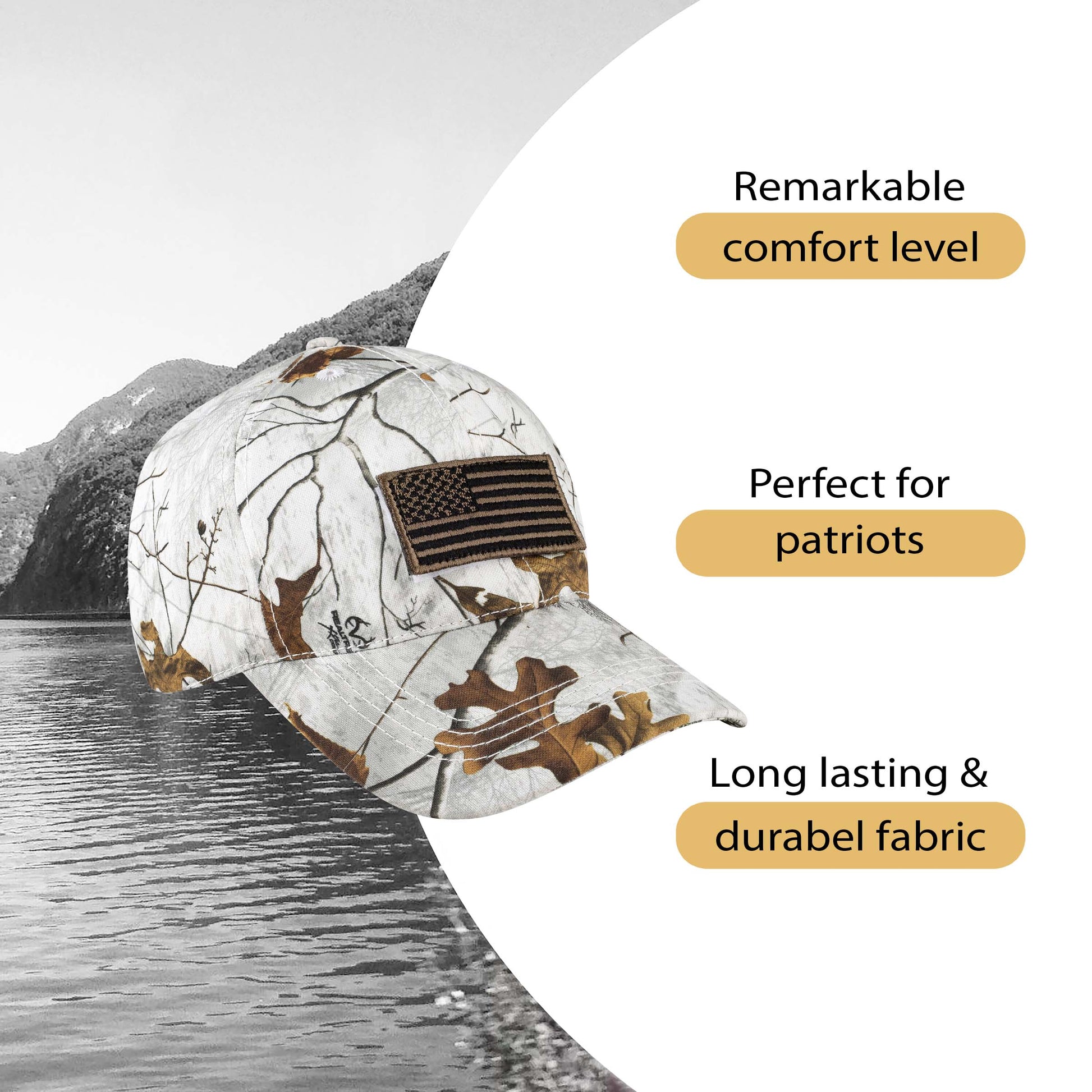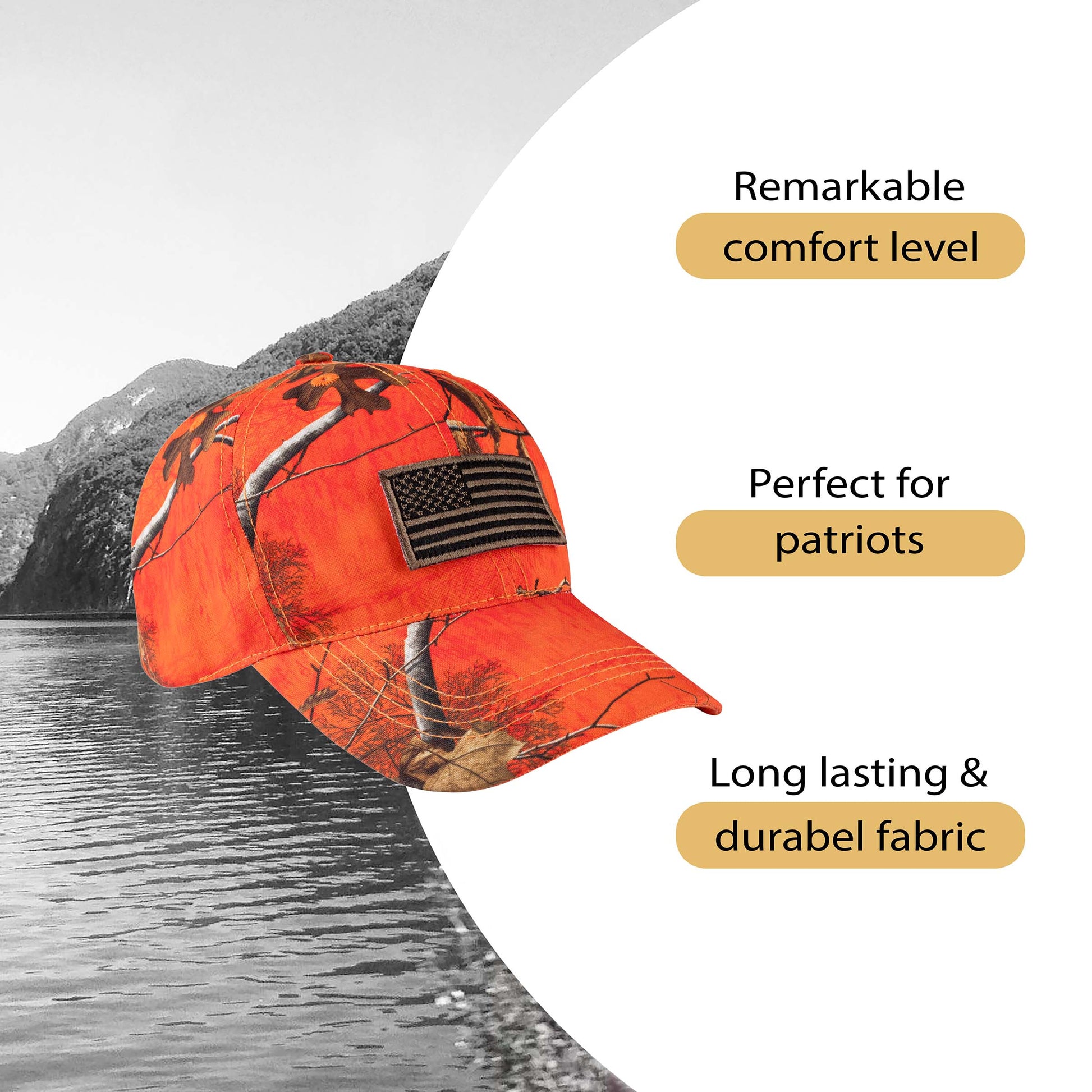 - Realtree Prints: Our Patriotic Caps feature exclusive and licensed Realtree Camo Prints, making them perfect for your next outdoor adventure.